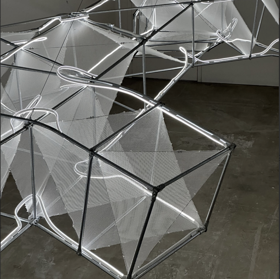 This installation is made with modeling techniques and structural logics more commonly found at a smaller scale size, and as such the model’s form collapses and deforms.
