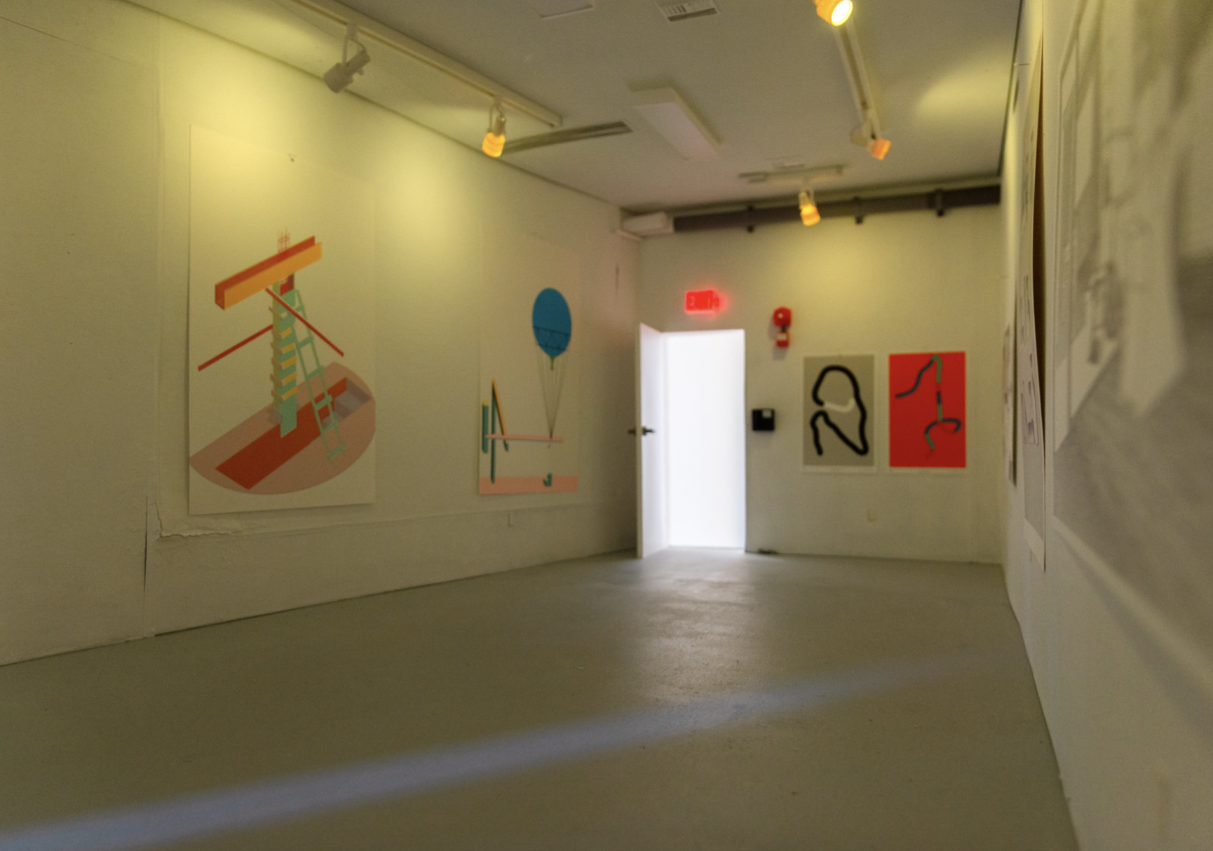 An exercise of reversing the technique of trompe l'oeil, producing a 2-dimensional drawing in a 3-dimensional gallery.
